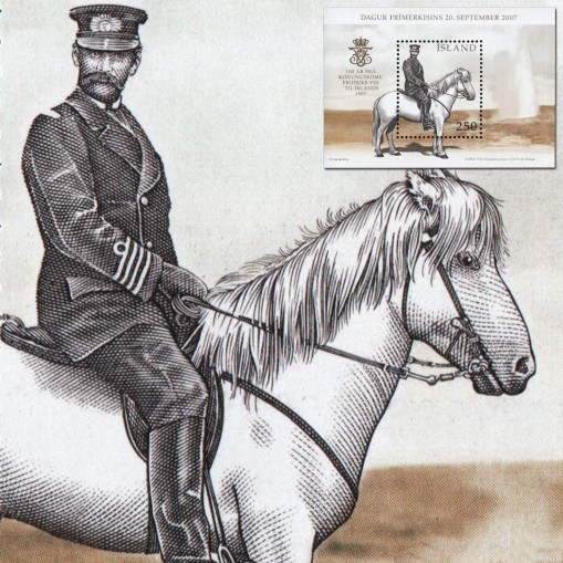 Znaczek w bloku wydany na Dzień Znaczka i upamiętniający setną rocznicę wizyty duńskiego króla Fryderyka VIII na Islandii.