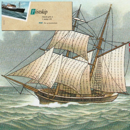 Na walorach widnieją statki transportujące pocztę: „Søløven”, „Arcturus”, „Gullfoss I” i „Esja II”.