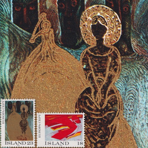 Na znaczkach przedstawiono reprodukcje obrazów malarzy islandzkich, kolejno: