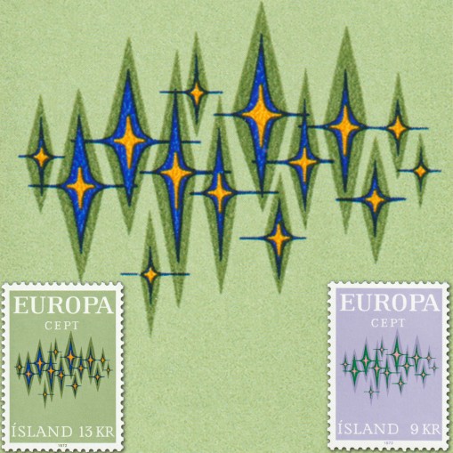Projektantem emisji EUROPA z 1972 roku był artysta fiński Paavo Huovinen, zaś dizajn to znana filatelistom zorza polarna (Aurora borealis) - każdy przebłysk reprezentuje kraj członkowski wspólnej Europy. Dla ciekawości, Aurora (pol. jutrzenka, zorza) była w mitologii rzymskiej boginią zorzy porannej, brzasku i świtu (poranku). Była utożsamiana z grecką Eos.