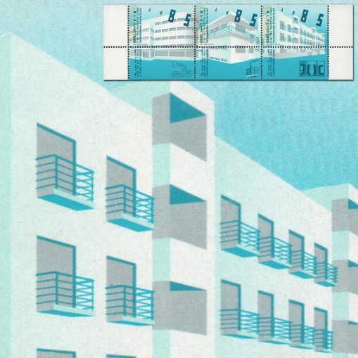 Seria w pasku z przywieszkami, na znaczkach której widnieje współczesna architektura z Tel Awiwu, kolejno: