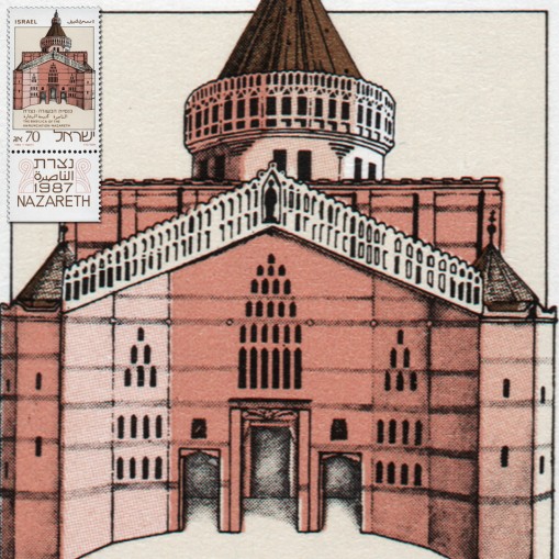 Na znaczku widnieje Bazylika Zwiastowania Pańskiego w Nazarecie.