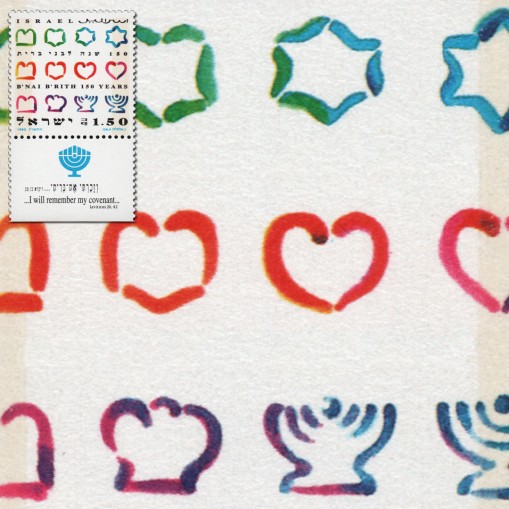 Znaczek z przywieszką upamiętniający 150. rocznicę postania organizacji B’nai B’rith, najstarszej nieprzerwanie działającej żydowskiej organizacji na świecie.