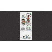 Znaczek z przywieszką upamiętniający 450. rocznicę urodzin pisarza Miguela de Cervantesa.