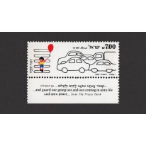 Znaczek z przywieszką promujący bezpieczeństwo w ruchu drogowym.