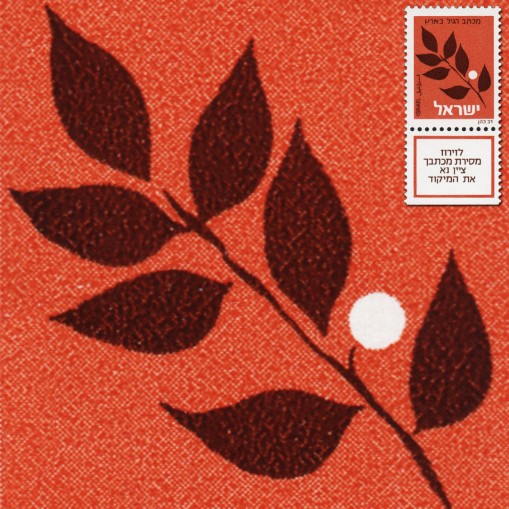 Znaczek z przywieszką, na którym widnieje gałązka oliwna.