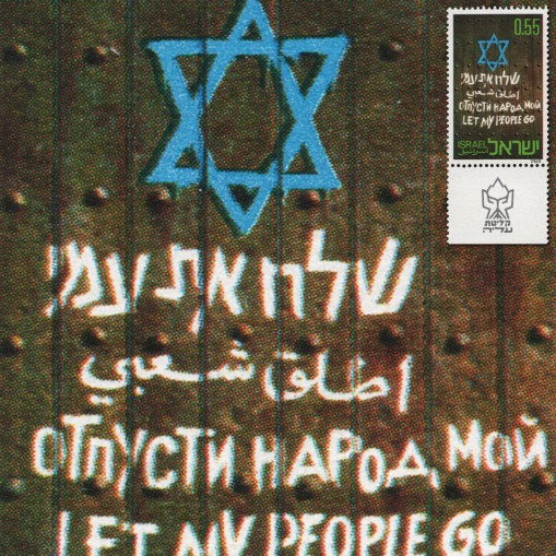 Na znaczku widnieje hasło „Let my people go” („Wypuść mój lud”, cytat z Księgi Wyjścia 5:1) i gwiazda żydowska na wagonie kolejowym.
