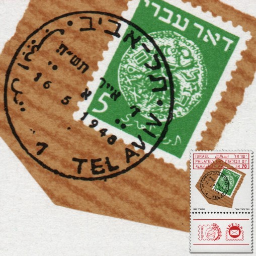 Na znaczku widnieje kasowany walor izraelski z 1948 roku.