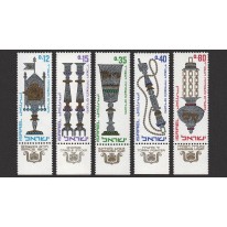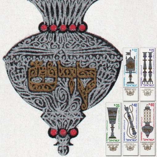 Na znaczkach widnieją przedmioty ceremonialne, kolejno: pudełko na przyprawy, świeczniki, kielich używany do modlitwy kidusz, ozdobny wskaźnik używany przy czytaniu Tory oraz lampa wisząca.