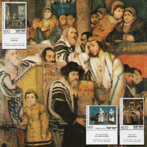 Seria z przywieszkami, na znaczkach której widnieją następujące dzieła sztuki żydowskiej: