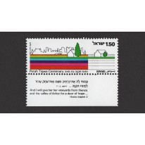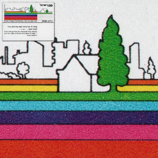 Znaczek z przywieszką upamiętniający setną rocznicę założenia miasta Petach Tikwa.