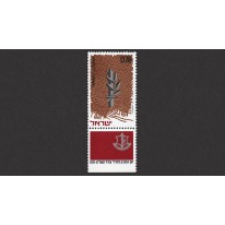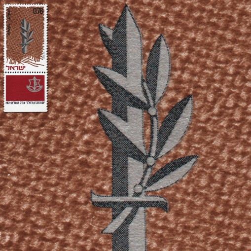 Na znaczku widnieje symbol Hagany, żydowskiej organizacji paramilitarnej działającej w latach 1920-1948 w ówczesnym Mandacie Palestyny.