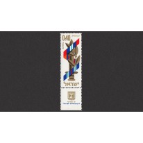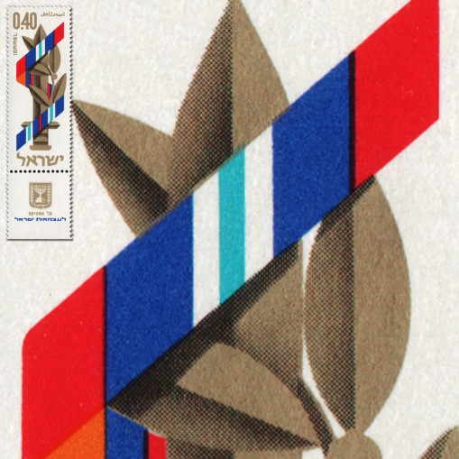 Na znaczku widnieje symbol izraelskiej armii - miecz i gałązka oliwna.