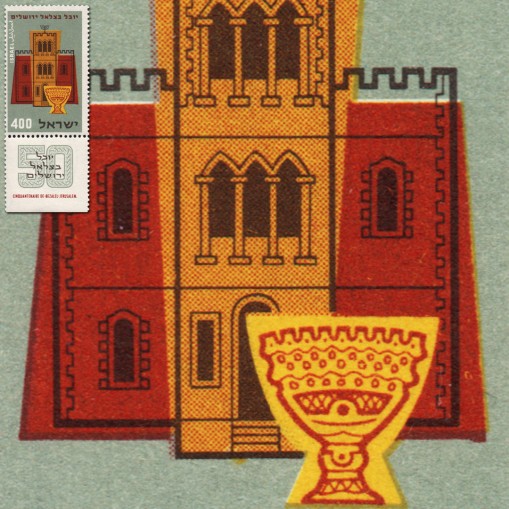 Znaczek z przywieszką upamiętniający 50-lecie Muzeum Besaleela w Jerozolimie.