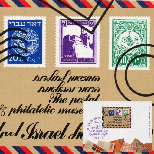Blok promujący muzeum poczty i filatelistyki w Tel Awiwie.