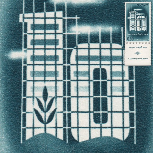 Znaczek z przywieszką upamiętniający dziesięciolecie izraelskich obligacji.