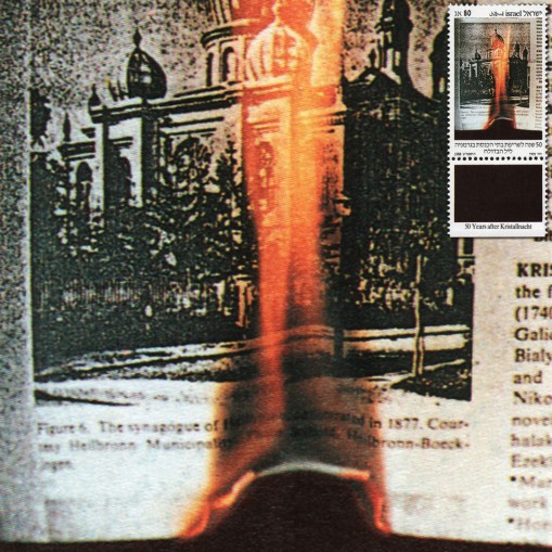 Na znaczku widnieje palące się zdjęcie synagogi w niemieckim Heilbronn.