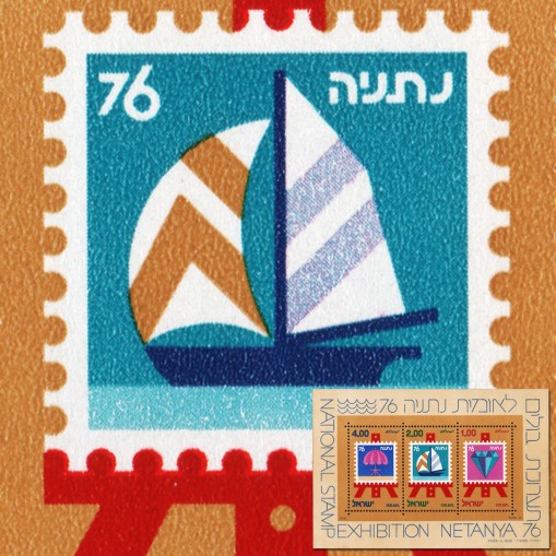 Blok wydany z okazji narodowej wystawy filatelistycznej „Netanya 76”.