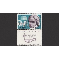 Znaczek z przywieszką upamiętniający setną rocznicę urodzin Henrietty Szold, amerykańskiej pedagog, pracowniczki socjalnej i pisarki pochodzenia żydowskiego, aktywistki ruchu syjonistycznego. Wpierała ona Alija Bet, nielegalną imigrację Żydów do Palestyny w okresie II wojny światowej, ratując około 30 tys. żydowskich dzieci z ogarniętej przez nazistów Europy.