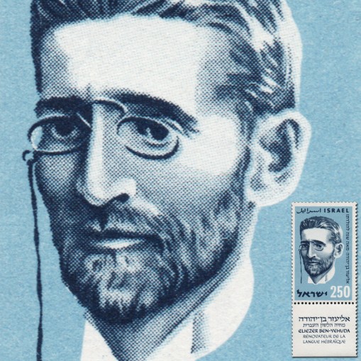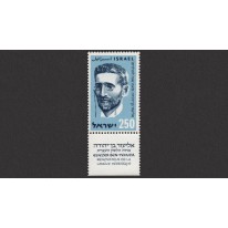 Znaczek z przywieszką upamiętniający setną rocznicę urodzin Eliezera ben Jehudy, żydowskiego językoznawcy, pisarza, działacza syjonistycznego, twórcy współczesnego języka hebrajskiego.