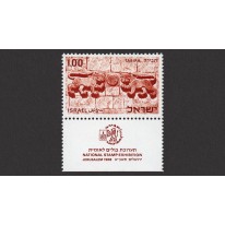 Znaczek z przywieszką upamiętniający narodową wystawę filatelistyczną „TABIRA” w Jerozolimie.