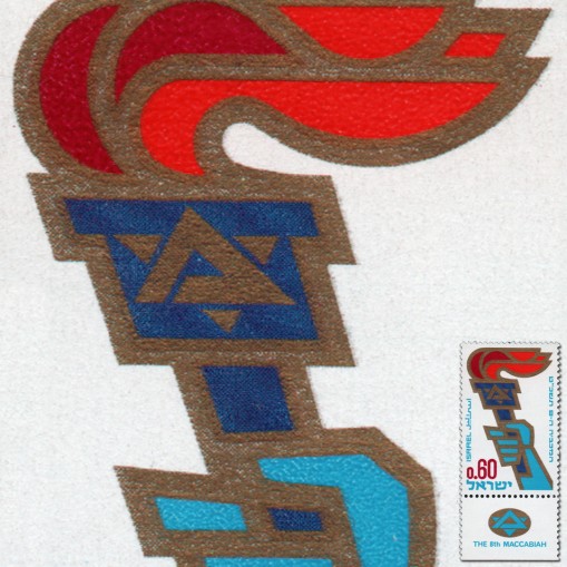 Na znaczku widnieje płomień z Gwiazdą Dawida.