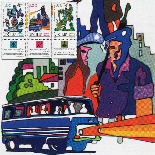 Na znaczkach widnieje policja, obrona cywilna i straż graniczna.