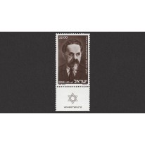 Znaczek z przywieszką upamiętniający dziesiątą rocznicę śmierci Izaaka Grünbauma, żydowskiego działacza syjonistycznego w II Rzeczypospolitej, posła na Sejm Ustawodawczy i Sejm I, II i III kadencji II RP, jednego z sygnatariuszy deklaracji niepodległości Izraela.