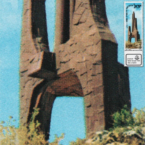 Na znaczku widnieje pomnik w En Zetim poświęcony żołnierzom brygady pancernej.