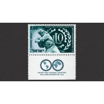 Znaczek z przywieszką upamiętniający 50-lecie Międzynarodowej Organizacji Pracy.