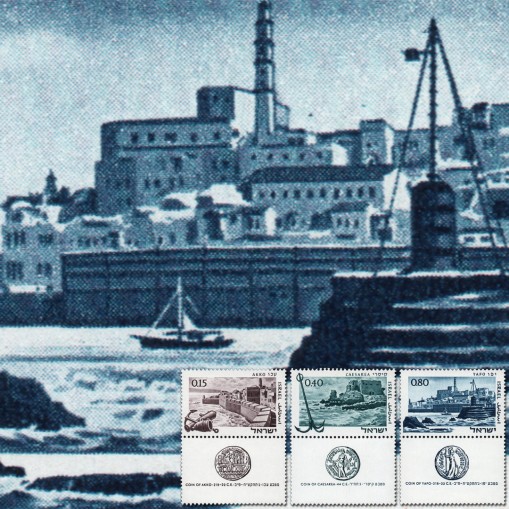 Seria z przywieszkami, na znaczkach której widnieją starożytne porty izraelskie, kolejno: Akka, Cezarea i Jafa.