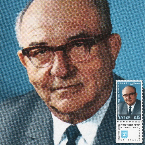 Znaczek z przywieszką upamiętniający Lewiego Eszkola, izraelskiego polityka, posła do Knesetu od 1951 do 1969 roku, ministra, premiera Izraela w latach 1963–1969.
