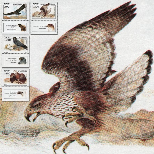 Seria z przywieszkami, na znaczkach której widnieją następujące gatunki ptaków drapieżnych wymienione w Biblii: