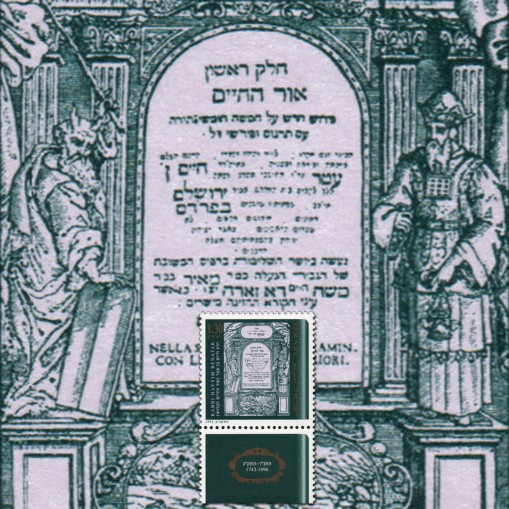 Na znaczku widnieje okładka jego dzieła „Or ha-Ḥayyim”.