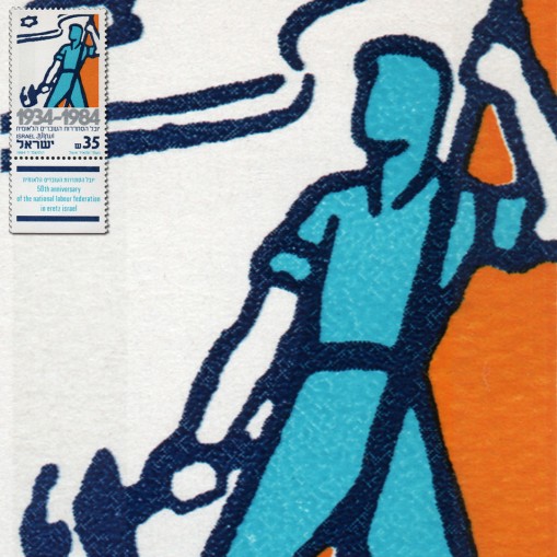 Znaczek z przywieszką upamiętniający 50-lecie Narodowej Organizacji Pracy.