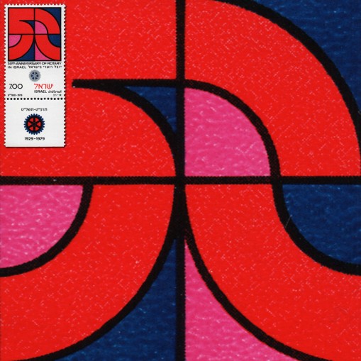 Znaczek z przywieszką upamiętniający 50-lecie organizacji Rotary International w Izraelu.