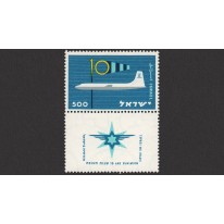 Znaczek z przywieszką upamiętniający dziesięciolecie izraelskiej awiacji cywilnej.