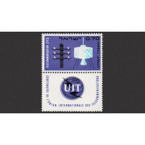 Znaczek z przywieszką upamiętniający stulecie istnienia Międzynarodowego Związku Telekomunikacyjnego.