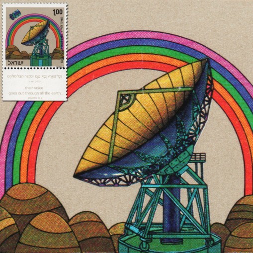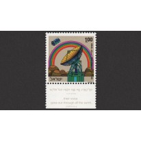 Na znaczku widnieje stacja naziemna i satelita.