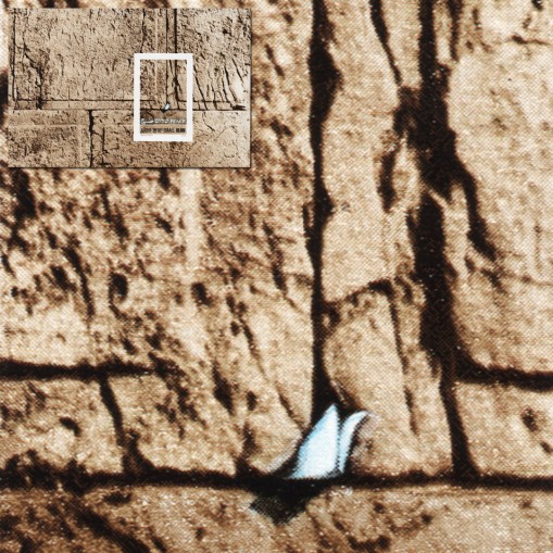 Na znaczku w bloku widnieje karteczka z modlitwą o pokój umieszczona w Ściana Płaczu.