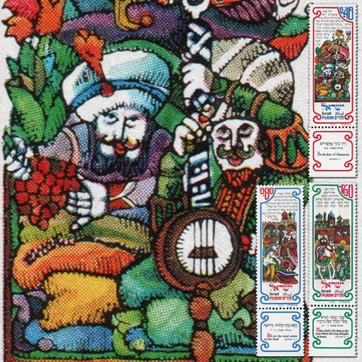 Na znaczkach widnieją ilustracje Księgi Estery.