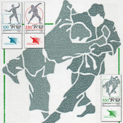 Seria z przywieszkami upamiętniająca dziesiątą Olimpiadę Machabejską, czyli Żydowskie Igrzyska Olimpijskie.