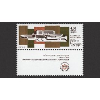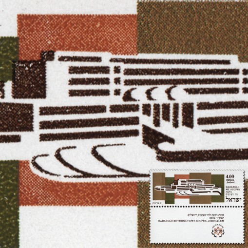Znaczek z przywieszką upamiętniający zakończenie przebudowy i ponowne otwarcie Szpitala Hadassa na Górze Skopus w Jerozolimie.