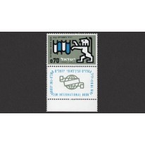 Znaczek z przywieszką upamiętniający drugie międzynarodowe targi książki w Jerozolimie.
