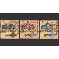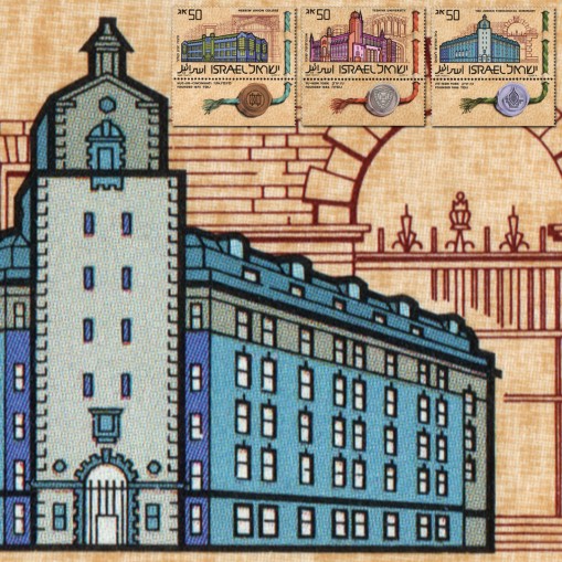 Na znaczkach widnieją żydowskie uniwersytety w Stanach Zjednoczonych, kolejno: