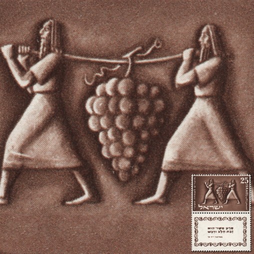 Na znaczku widnieją tragarze niosący kiść winogron.