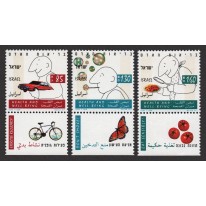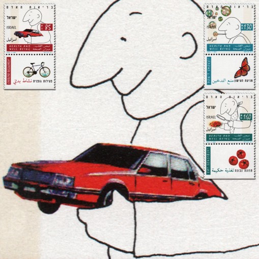 Na znaczkach widnieją kolejno: regularne ćwiczenia fizyczne, nie palenie tytoniu oraz zdrowe odżywianie.