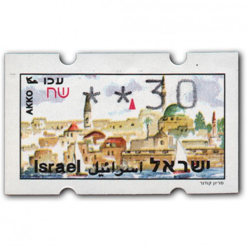 Znaczek z serii promującej atrakcje turystyczne Izraela i sprzedawany w automatach w dowolnych wybranych przez kupującego nominałach, drukowany na papierze z widokiem miasta Akka. Oferowany walor ma nominał 0,30 NIS.