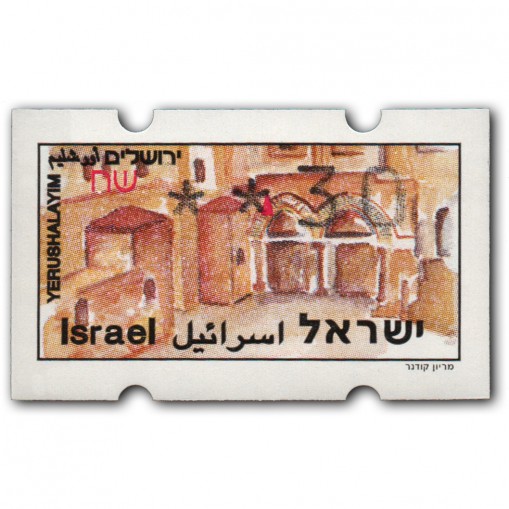 Znaczek z serii promującej atrakcje turystyczne Izraela i sprzedawany w automatach w dowolnych wybranych przez kupującego nominałach, drukowany na papierze z widokiem wnętrza Bazyliki Grobu Świętego. Oferowany walor ma nominał 0,30 NIS.