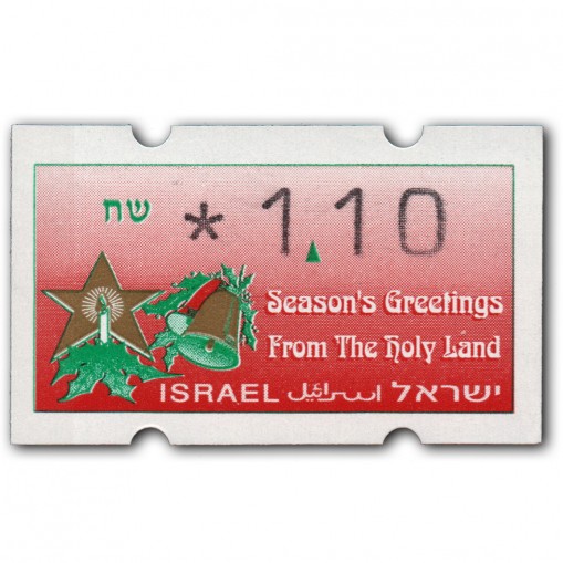 Znaczek wydany na Boże Narodzenie i sprzedawany w automatach w dowolnych wybranych przez kupującego nominałach, drukowany na papierze z wizerunkiem ozdób bożonarodzeniowych. Oferowany walor ma nominał 1,10 NIS.